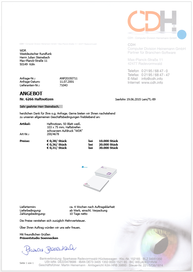 - Besondere Darstellung der Staffelpreise (Mengen und Einzelpreise)
